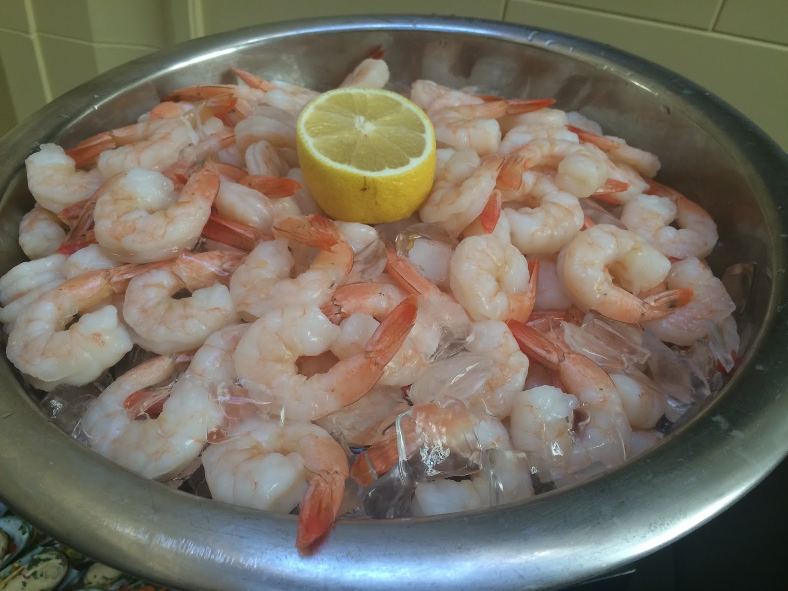 crab legs, smoked smoke salmon, baked salmon and jumbo shrimps.
