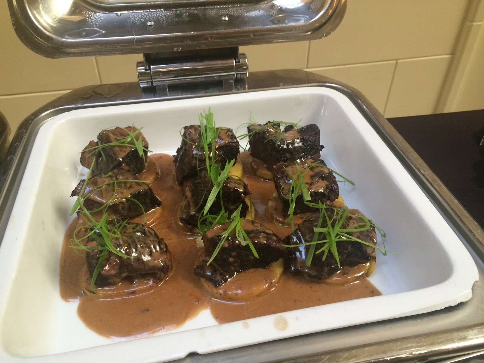 section, there were baked fish, short braised beef ribs, croquette, mixed vegetables,